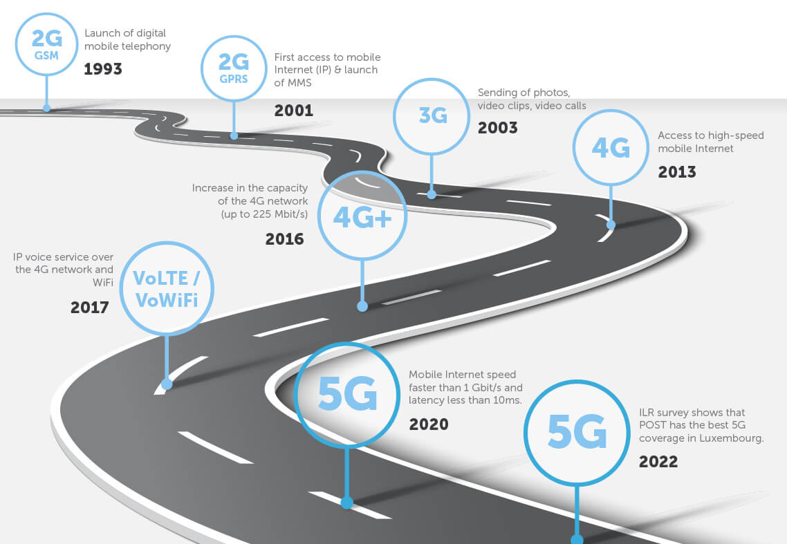 In order to meet the growing connectivity needs of both private and business customers, the Internet speed needs to be even faster and the latency even lower, for a growing number of users and connected objects. By 2023, 4G will have reached its limits due to the saturation of the current network. Every year, data connections increase by 40% and the 4G network will eventually no longer be able to handle the growing number of connections. 5G is also part of the digitalisation evolution in Luxembourg in general, as well as the development of POST’s “Network of the future”.