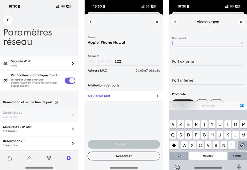 To modify a DNS server, open a port, or configure the IP range (DHCP), go to the "Settings" menu > "Networks".