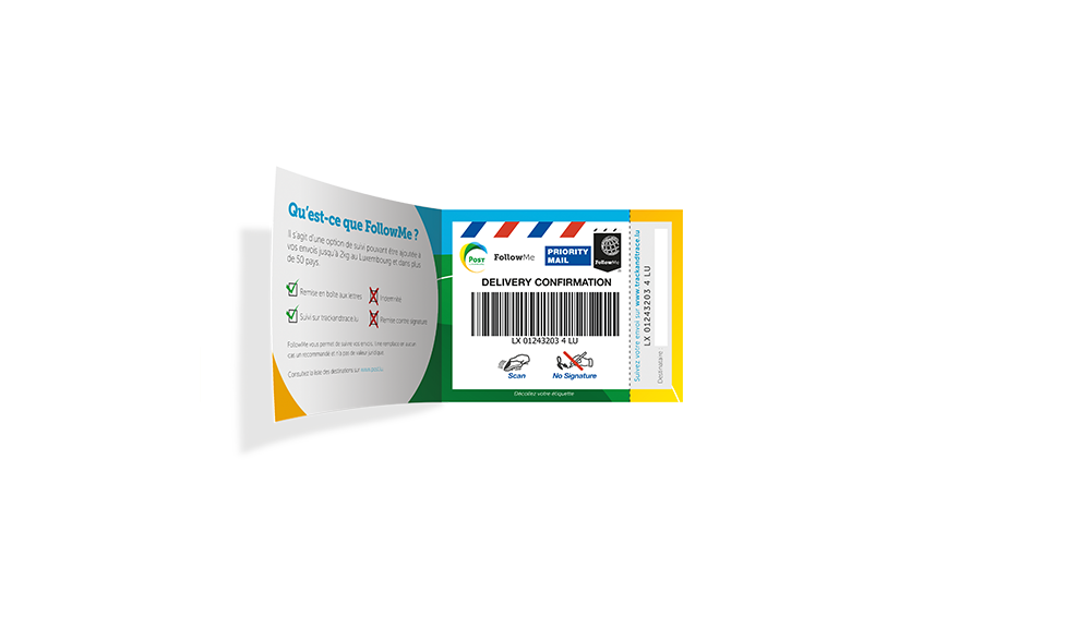 FollowMe est une étiquette collée sur l’envoi, l’expéditeur garde la souche avec le numéro de suivi et peut alors suivre son envoi sur Internet.