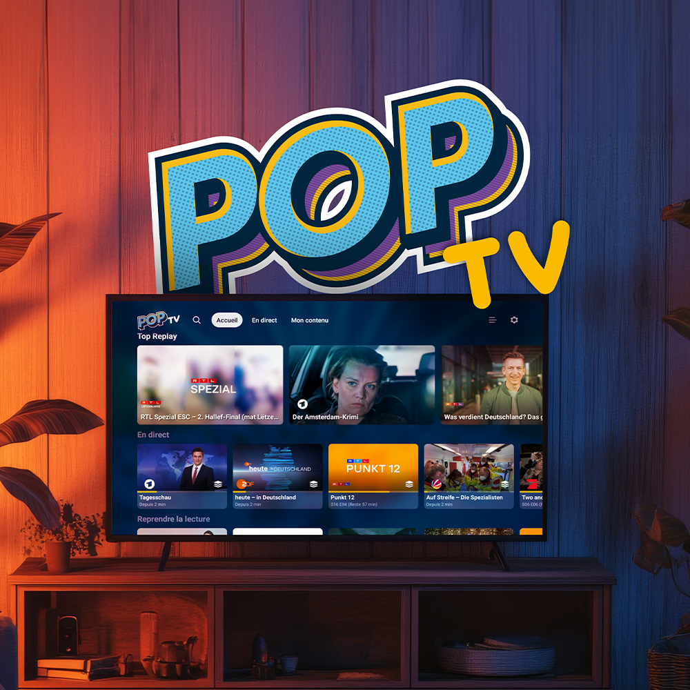 Grâce à POP TV Go, retrouvez vos chaînes, contenus favoris, enregistrements et bouquets partout au Luxembourg et en Europe*.